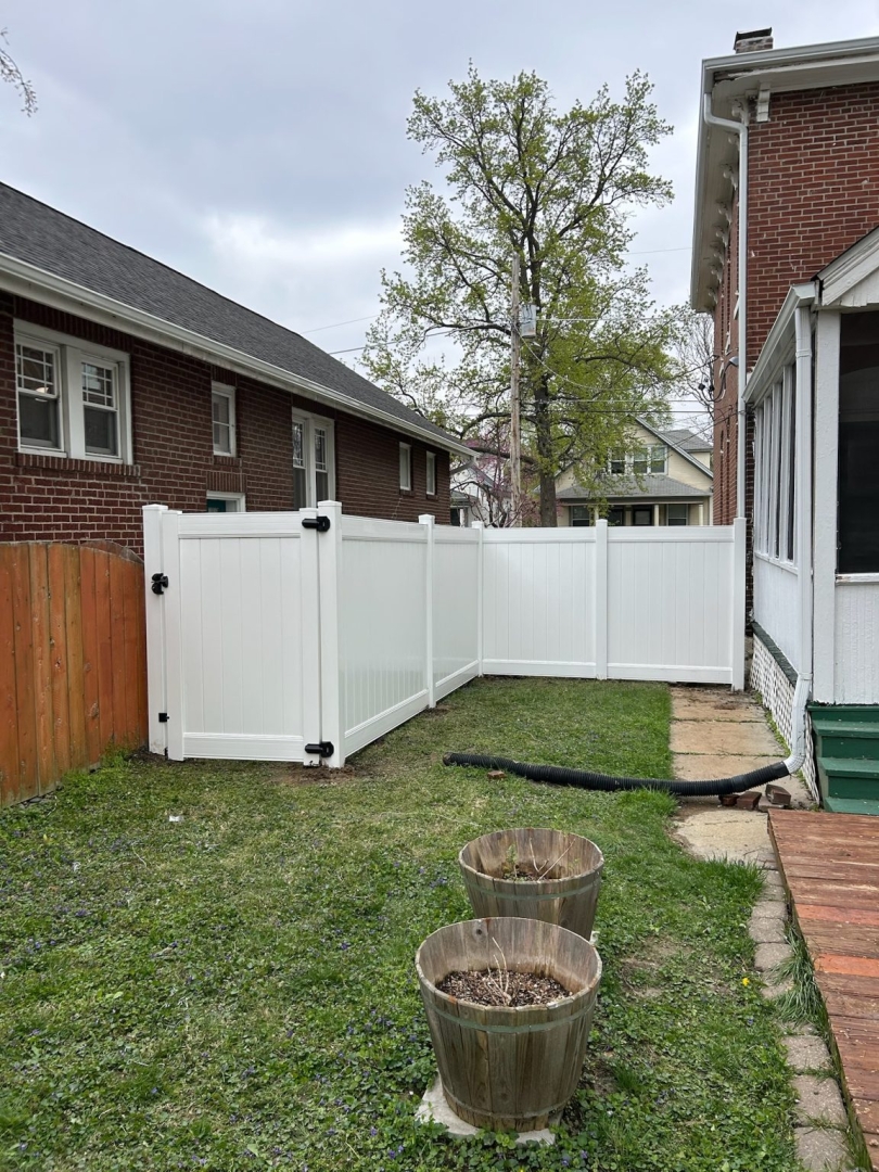 Newly installed vinyl privacy fence at a residential property in Phoenixville, PA, showcasing modern low-maintenance fencing designed for durability, privacy, and enhanced outdoor living.