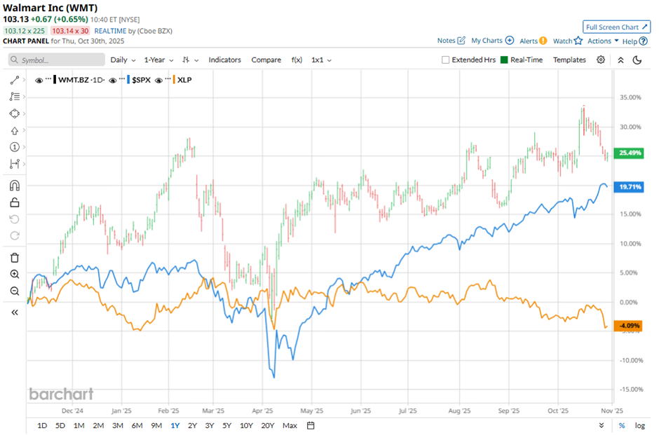 Narrowing the focus, the retail giant's stock has also outpaced the Consumer Staples Select Sector SPDR Fund’s (XLP4.7% decline over the past 52 weeks and 2.7% dip on a YTD basis.