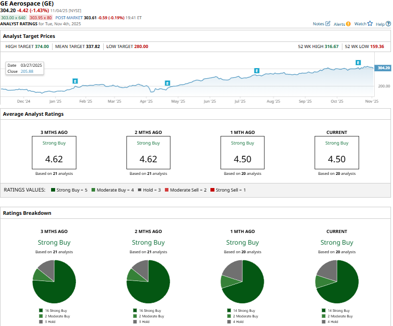 GE’s mean price target of $337.82 represents a 11.1% premium. Meanwhile, the Street-high target of $374 suggests a notable 22.9% upside potential from current price levels.