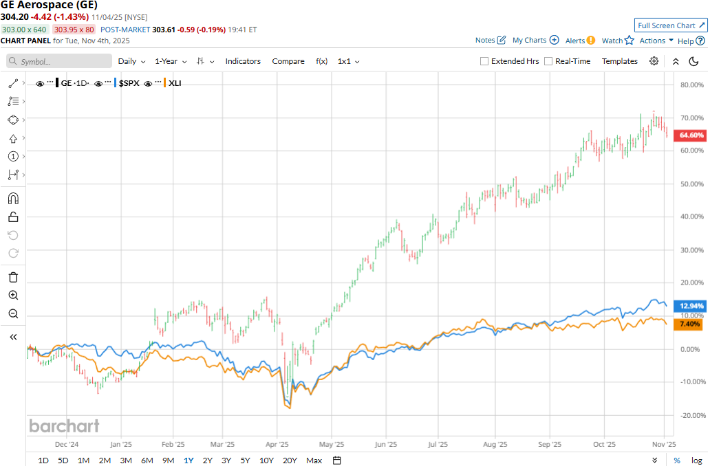 Narrowing the focus, GE Aerospace stock has also outperformed the Industrial Select Sector SPDR Fund’s (XLI15.8% surge in 2025 and 14% uptick over the past 52 weeks.