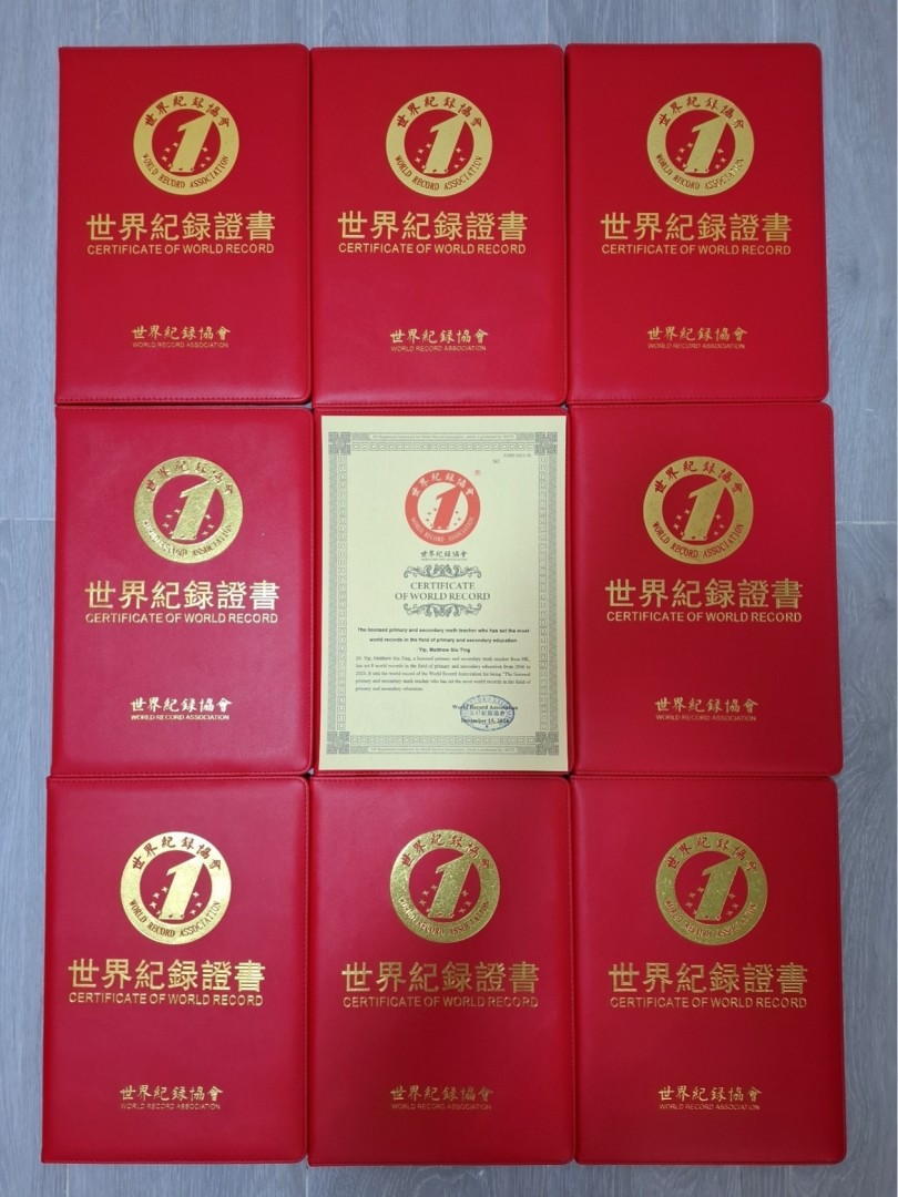 Dr. Yip, Matthew Siu Ting, a licensed primary and secondary mathematics teacher in Hong Kong and a distinguished professor (Prof. Mathewmatician), has set eight world records from August to December 2024, set the world record called “The licensed primary and secondary math teacher who has set the most world records in the field of primary and secondary education”, which involves publication, public examinations, columns, news reports, magazines, awards, etc.