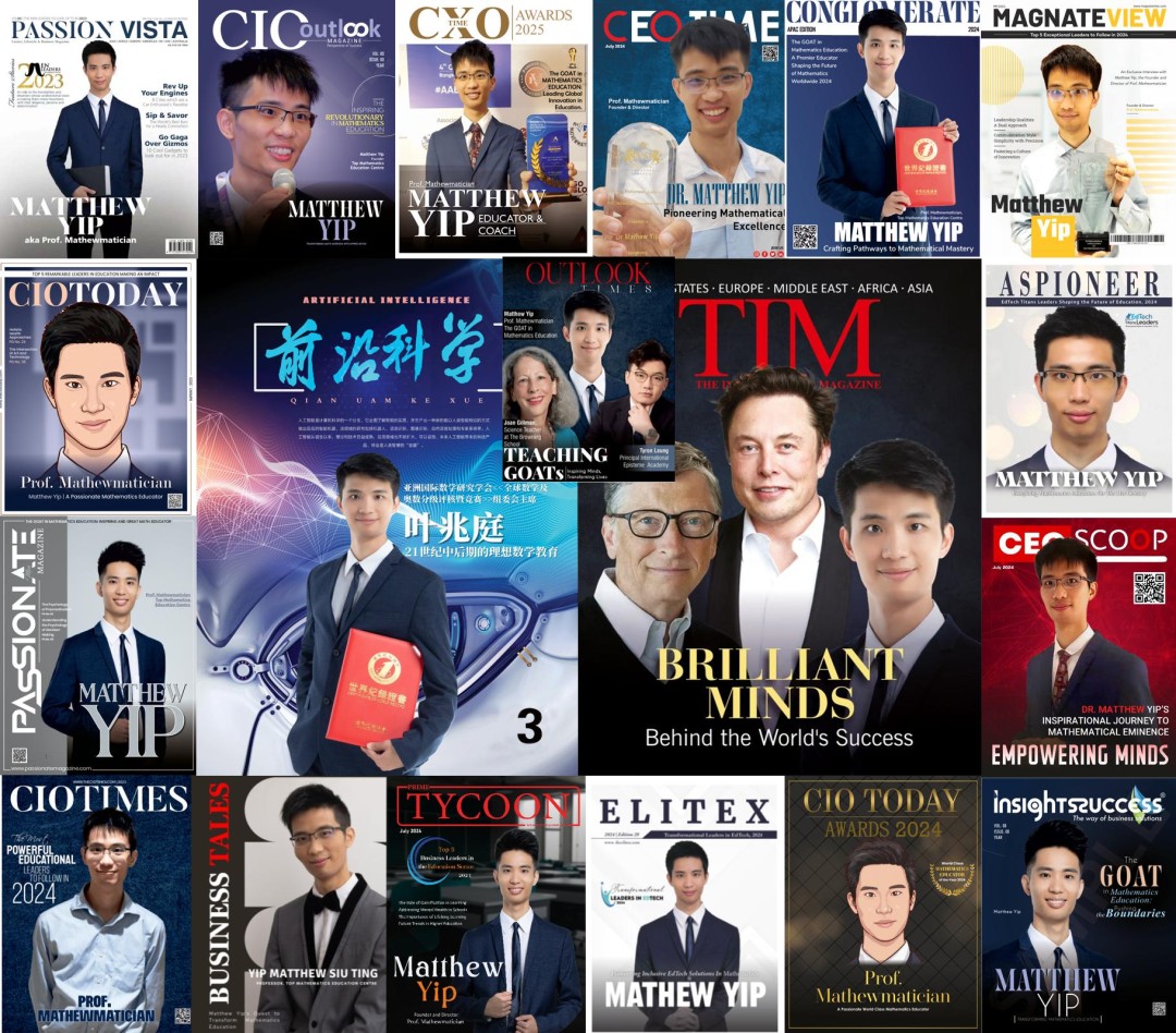 As the founder and chairman of the "Global Mathematics and Mathematics Olympiad Graded Assessment Test with Competition" and the designer of the "Mathewmatician’s Dictionary", Matthew Yip has won more than 35 international awards or honors (such as The GOAT in Mathematics Education, The Greatest Emerging Mathematics Educator, World-class mathematics educator, Top mathematics educator, Medal of the King of Thailand, Lifetime Achievement Award of the UK Parliament, etc.), readers of his works come from more than 50 countries or regions, and his students have won more than 30 different highest-level honors or awards, preparing questions and giving lectures for mathematics competitions in universities and primary and secondary schools. Due to his extraordinary achievements, many magazines invited Matthew to appear on their magazine covers and cover stories, and even Elon Musk and Bill Gates appeared on The International Magazine (TIM for short) on the same cover to promote his philosophy on mathematics education and use his story to encourage young people on how to gradually move from an ordinary person to the road to success. In addition, Matthew has been reported by more than 400 well-known domestic and foreign media.