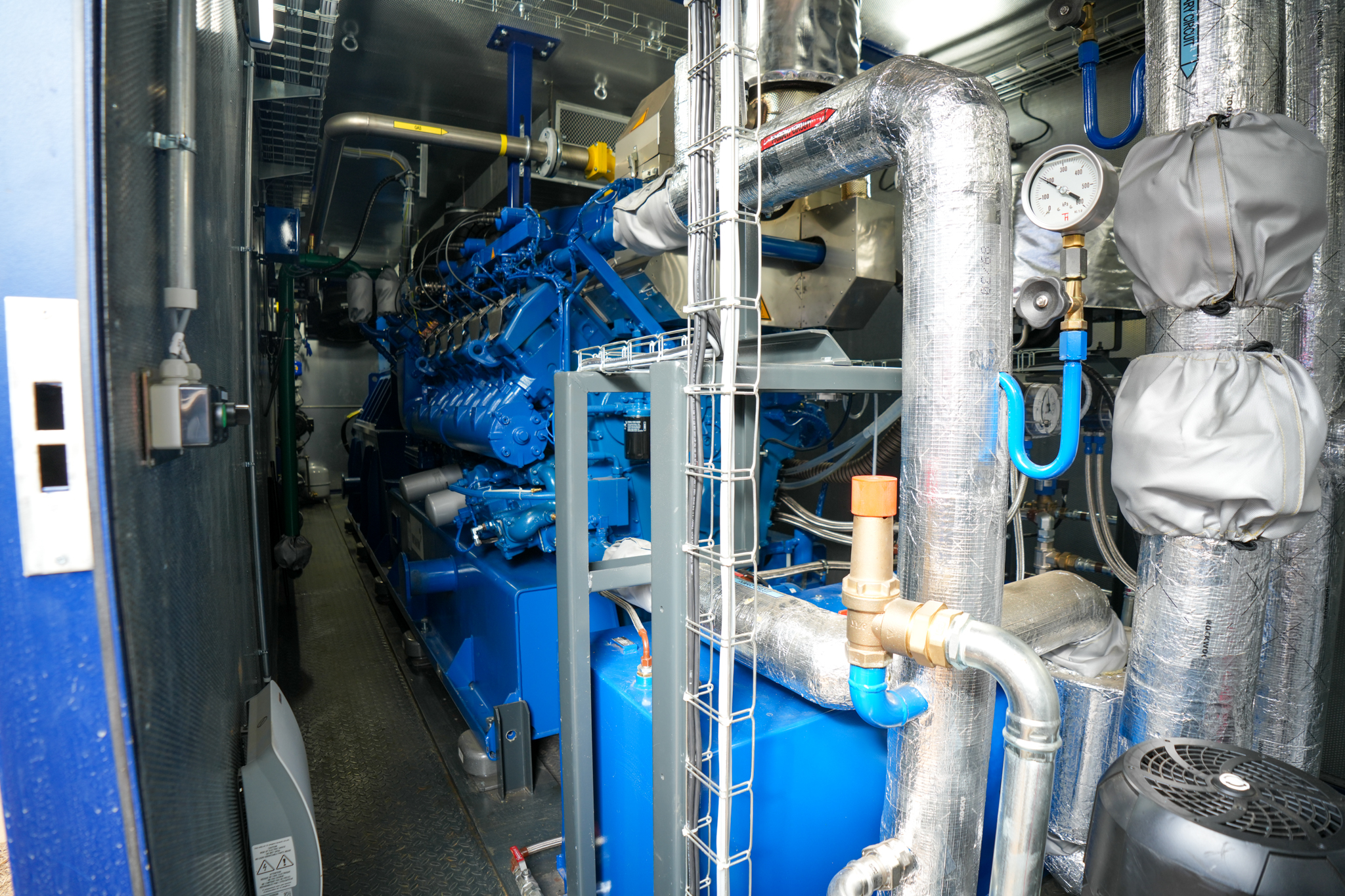 The redundant 2.4-MW CHP plant simultaneously generates electricity and uses the waste heat created by that generation to provide chilled water resiliency. A high-efficiency absorption chiller takes the heat from the CHP plant to create chilled water, providing cooling throughout the year.