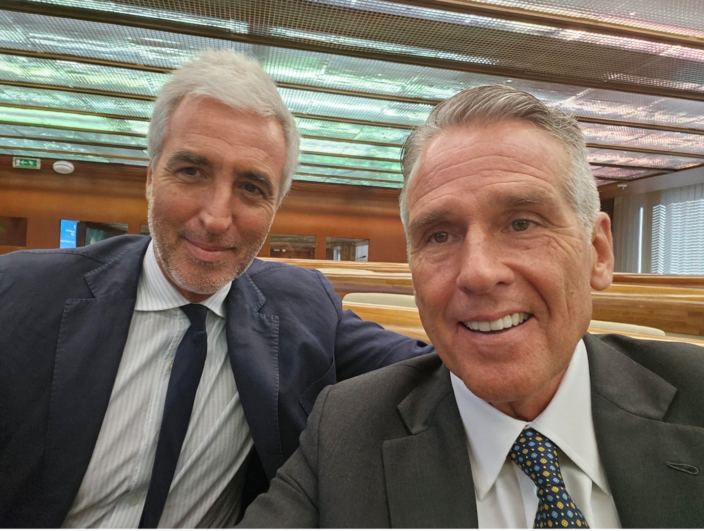 Palermo FC President Dario Mirri (left) and Brera Executive Chairman Dan McClory (right) at the recent Serie B Owners’ Meetings in Rome on July 23, 2025
