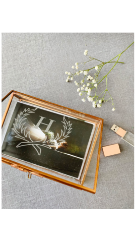 The box features space for 110 4x6-inch prints and includes a dedicated USB slot for a flash drive in rose gold, walnut, or maple. Photographers can choose between gold or silver debossing on the lid. The magnetic closure system ensures secure storage of adorned memories from weddings, family photo sessions, or pregnancy photo shoots.
