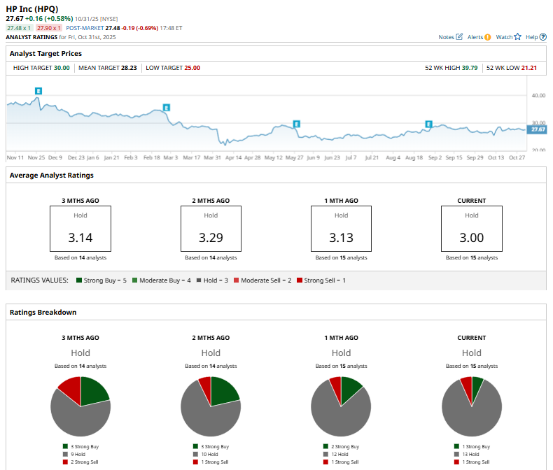 On Oct. 14, HSBC upgraded the stock to “Buy” and increased its price target to $30, which is also the Street-high target, from $28.10, citing improving demand prospects for PCs and printers. The firm expects a boost from the end of Windows 10 support, projecting 5.1% PC shipment growth in fiscal 2025, along with stronger printer sales and reduced tariff risk due to HP’s lower exposure to China imports.