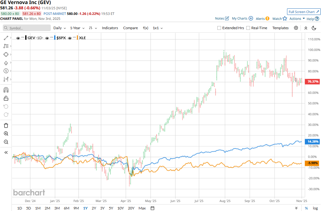 Narrowing the focus, GE Vernova has also outperformed the sector-focused Energy Select Sector SPDR Fund’s (XLE) 2.9% gains in 2025 and a marginal 12 bps uptick over the past 52 weeks.