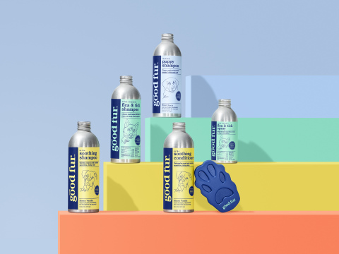 Conventional pet care products often contain harsh chemicals and have historically been packaged in plastic, with pet food and treat packaging alone creating 300 million pounds of plastic each year in the United States. Good Fur products are made with aluminum packaging that come with a reusable pump. All products are free from parabens, sulfates (SLS), triclosan, synthetic dyes and formaldehyde, and instead contain gentle and effective ingredients such as organic oatmeal, jojoba, aloe vera, active botanical oil and 100% natural fragrances. The brand is instilling confidence among consumers that what they are using is good for their pets and the planet.