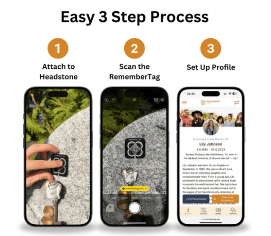 RememberTag is a simple yet effective way to commemorate a loved one and preserve their memories forever. To get started, users simply affix their plaque, scan the code, and set up a profile. The process takes less than five minutes.
