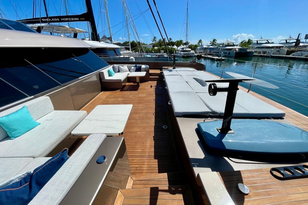 CARTOUCHE is the largest catamaran chartering in the BVI. My BVI Charter calls it a value standout—95 feet of luxury at a lower price than smaller 80ft Sunreefs. The flybridge with Jacuzzi and sail performance make it both relaxing and rewarding.