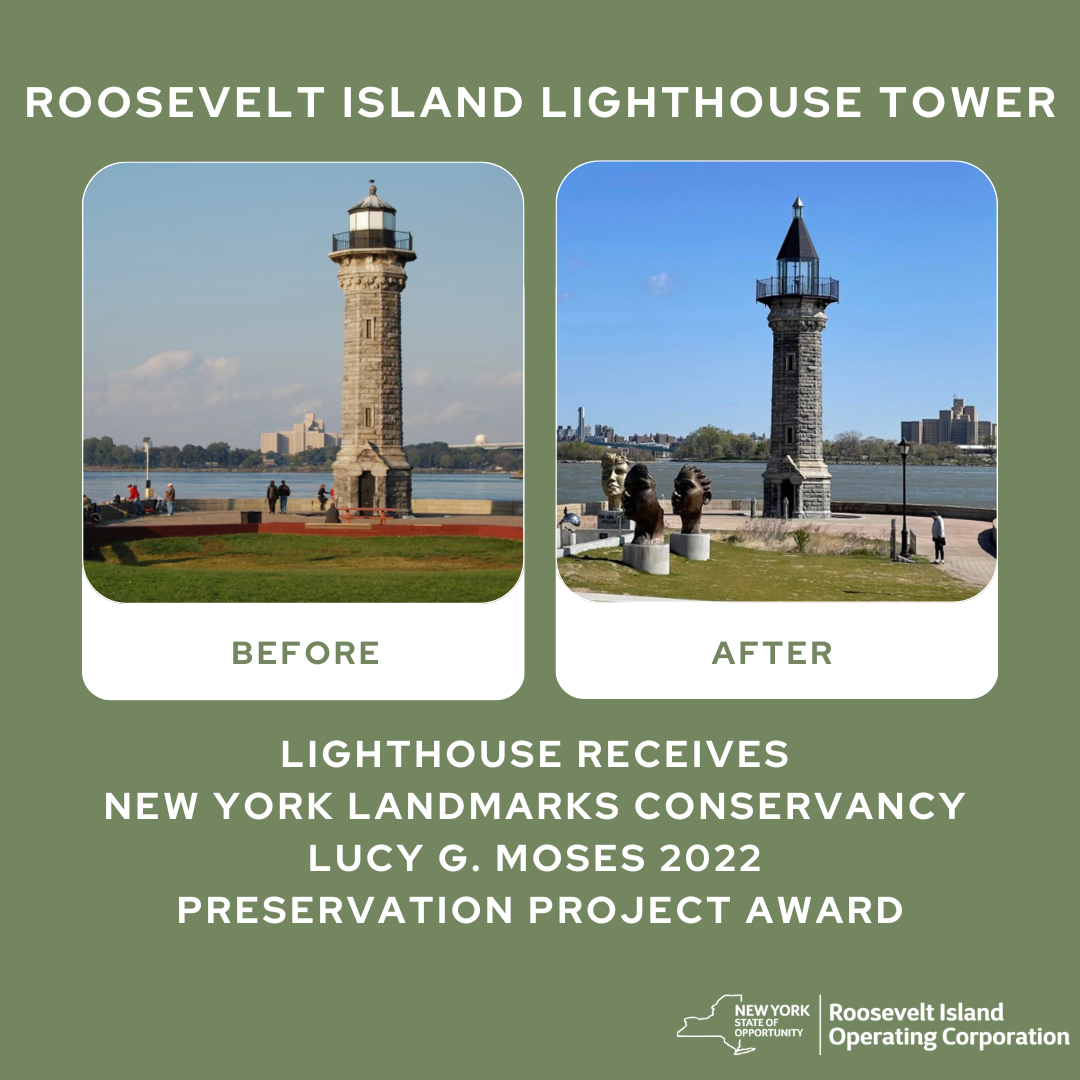 Roosevelt Island, NY, March 01, 2023 (GLOBE NEWSWIRE) -- Roosevelt Island Operating Corporation President & CEO Shelton J. Haynes today announced the Roosevelt Island Lighthouse received recognition from the highly regarded New York Landmarks Conservancy. The Conservancy selected the Lighthouse to receive the Preservation Project Award for 2022. The Conservancy bestows these awards annually to recognize excellence in historic preservation. They are named for a generous and dedicated New Yorker whose contributions benefitted the City during their lifetime.