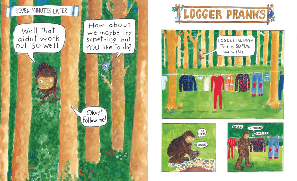 Strawberry the Sasquatch lives deep in the forest, isolated and alone, the way she likes it. Most of the animals are afraid of her, but she’s content to do all the things a sasquatch does: hiking and foraging as well as dance moves and logger pranks. Everything changes when an extremely friendly squirrel named Nutty shows up. At first things don’t go so well. Strawberry’s climbing is more like crashing, and Nutty turns out to be terrible at logger pranks. Strawberry isn't sure she and Nutty can get along. But thanks to some cloud watching, seed portraits, and stale marshmallows, the two find a way to be friends.