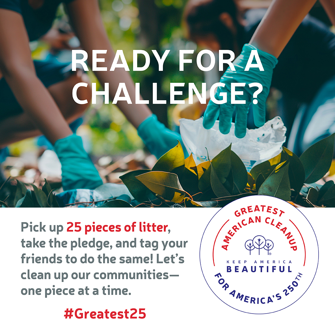 Between now and Earth Day (April 22), Keep America Beautiful is challenging everyone to pick up 25 pieces of litter, post a photo or video on Instagram using #Greatest25, take the Pledge to support the Greatest American Cleanup, and invite others to do the same.
