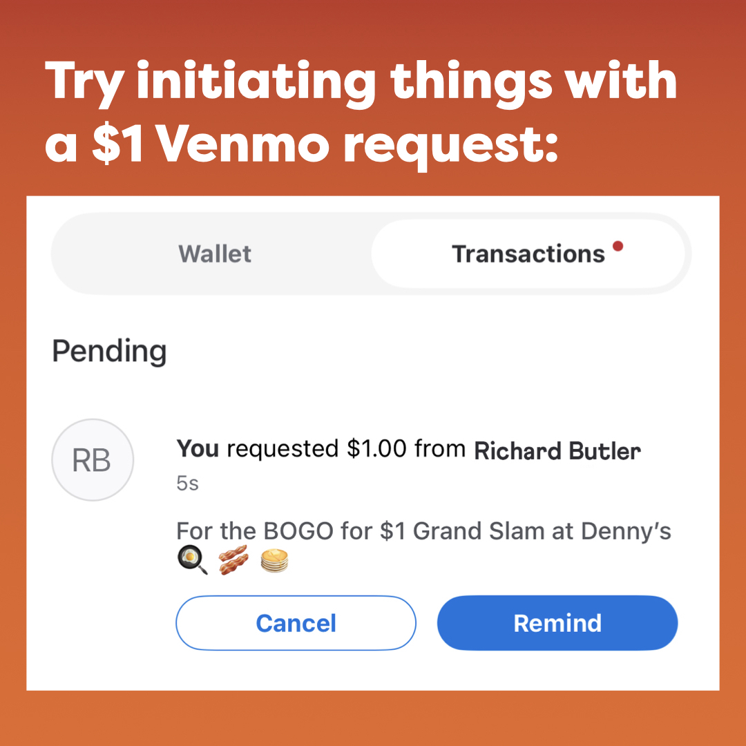 Whether it’s reconnecting with an old friend, a first date or even meeting up with a stranger, Denny’s Buy One Slam Get One for a $1 Deal is the perfect reason to extend an invite. Fans in need of a clever opening line or a boost of courage can head to Denny’s social channels for text ideas to initiate a “Denny’s Date.”