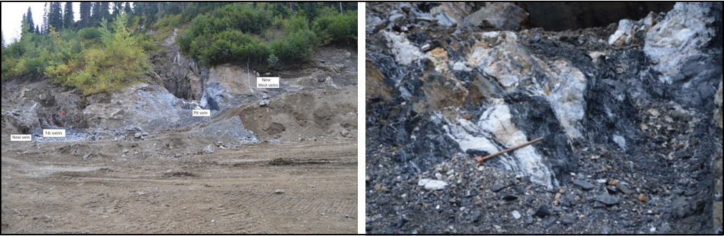 • Mid-West Vein: Located 13 metres from the South Pit Vein. The vein is approximately 1 metre wide and exposed over 3 metres.