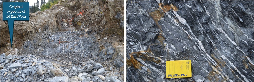 • 16 Vein: This historically known vein is located approximately 20 metres from the South Pit Vein. Chip samples and grab samples were taken from the vein during the October 14, 2020 due diligence process.