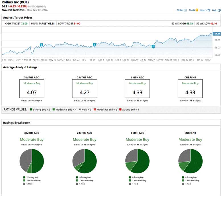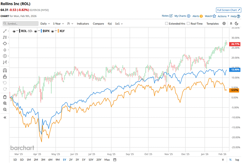 Shares of the company have outperformed in the broader market over the past year and in 2026. ROL stock has surged 28.4% over the past 52 weeks and 7.2% on a YTD basis. In comparison, the S&P 500 Index ($SPX) has returned 15.6% over the past year and risen 1.7% in 2026.