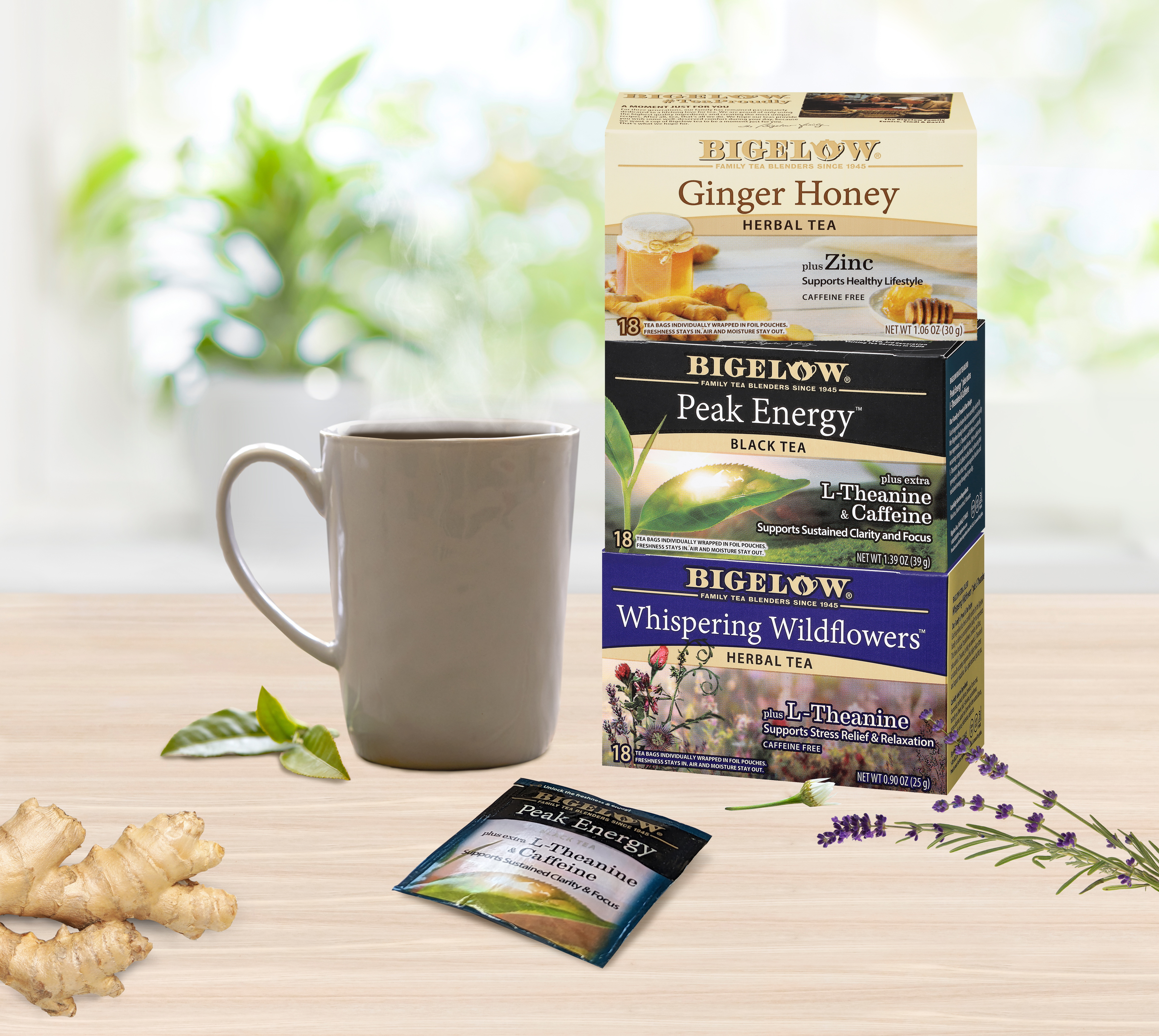 Fairfield, Connecticut, June 08, 2023 (GLOBE NEWSWIRE) -- Bigelow Tea is excited to announce the launch of three new flavors expanding the ever-popular Bigelow Signature Line of teas. As the national market leader producing over two billion tea bags annually, Bigelow Tea continues to transform the tea industry with Peak Energy™ Black Tea plus extra L-Theanine and Caffeine, Whispering Wildflowers™ Herbal Tea plus L-Theanine, and Ginger Honey Herbal Tea plus Zinc where each blend provides exceptional flavor while featuring ingredients and nutrients with functional benefits that support a healthy way of life.