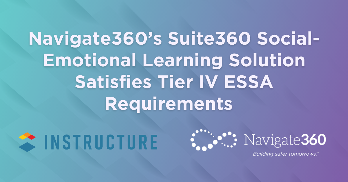 Richfield, OH, Aug. 15, 2023 (GLOBE NEWSWIRE) -- Navigate360, the nation's leader in K–12 school safety and student wellness solutions, proudly announces the official validation and endorsement of their Suite360 social-emotional learning solution by LearnPlatform. This achievement underscores Suite360's effectiveness in meeting the stringent criteria set by the Every Student Succeeds Act (ESSA) Tier IV, thus fulfilling the evidence-based intervention prerequisites necessary for educational districts to procure the solution using allocated ESSA funds.